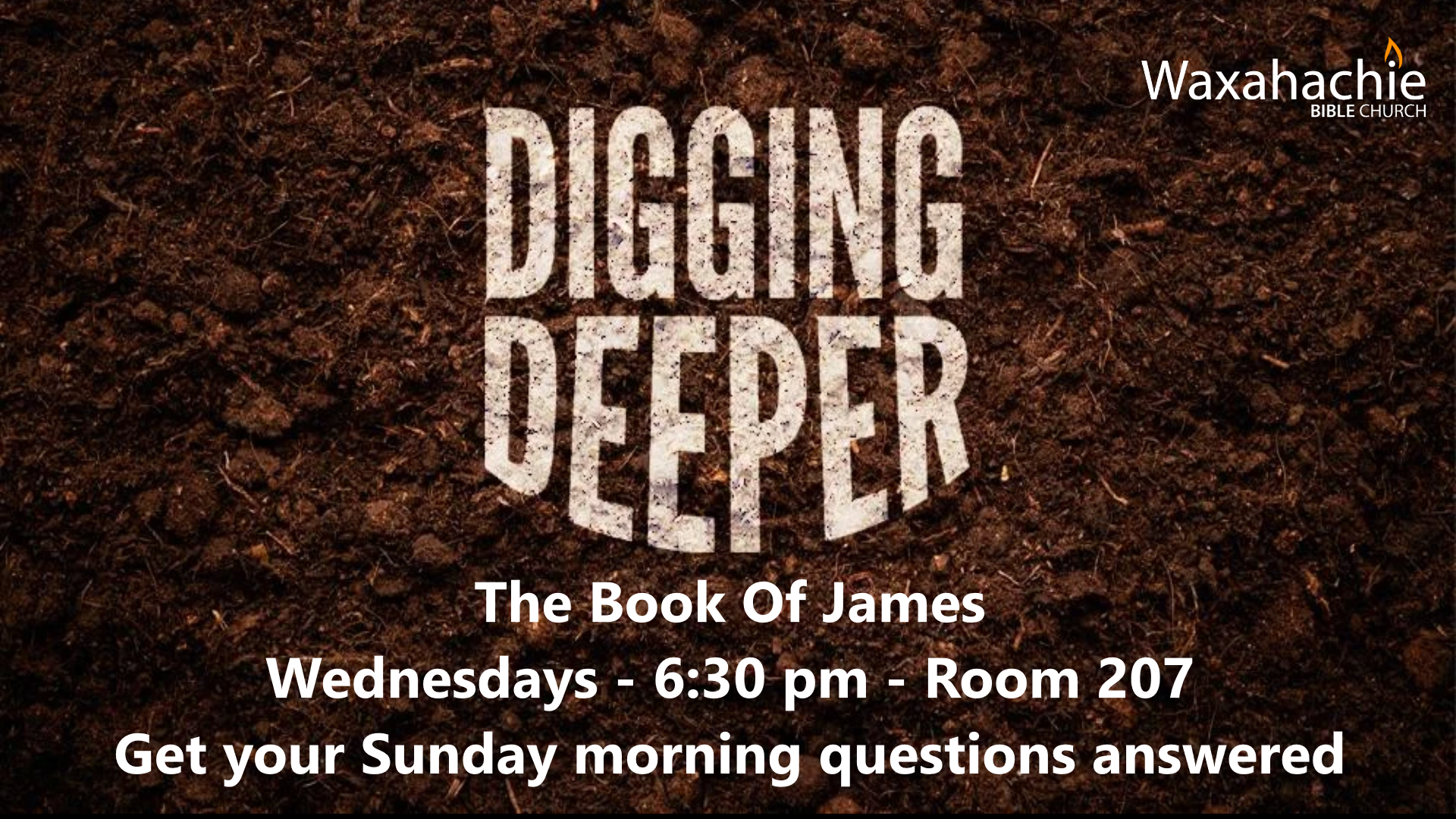 Do you have questions about Sunday's sermon? Come to our Digging Deeper (into the book of James) class Wednesdays at 6:30 in the evening, in room 207.