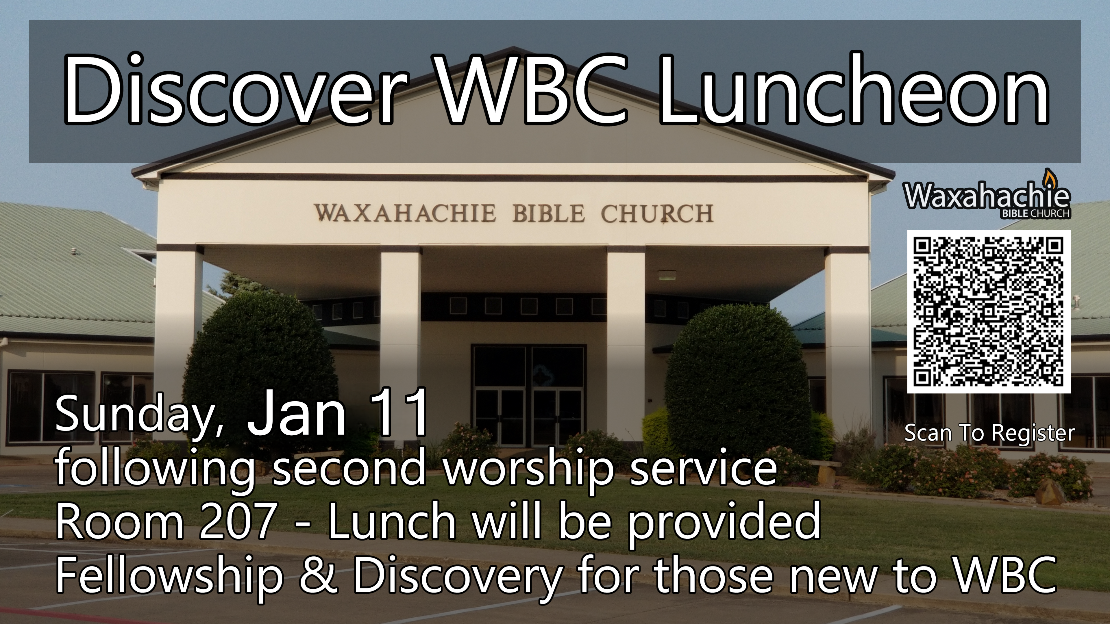If you are fairly new to WBC, come and join us for a great time of food, fellowship, and discovery on Sunday, January 11, in room 207, following the second worship service! Please sign up on Realm or call/text Pastor Bill at 469.530.8160.