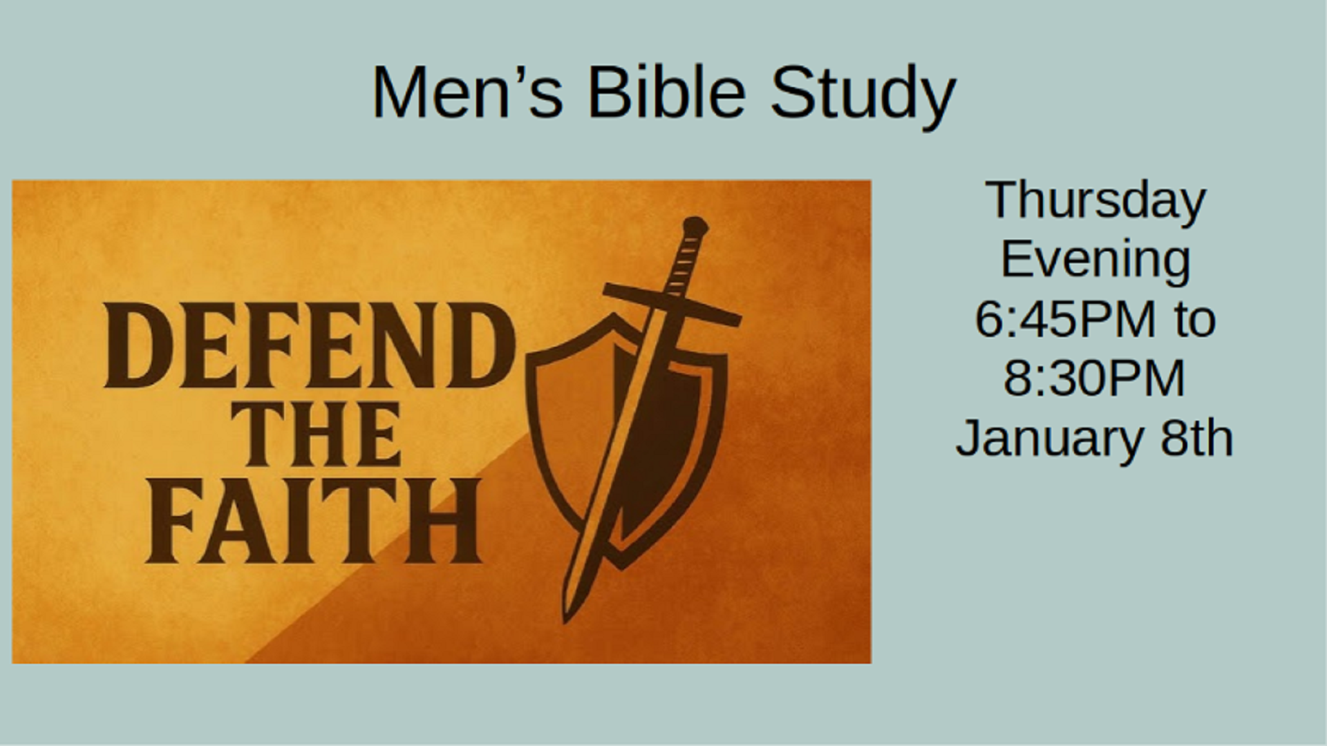 Men! Join us as we look into why we need to know what we believe and how to defend that belief. We meet Thursdays (January 8-March 5) at 6:45 pm in room 208/209.